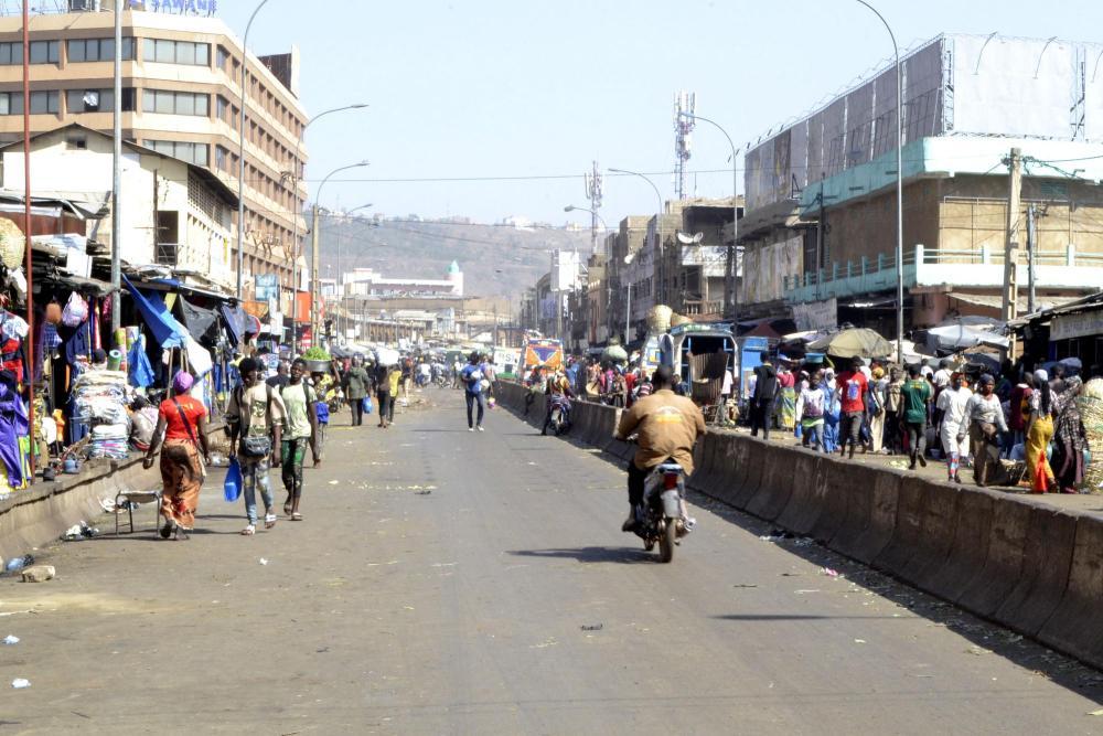 2024年12月31日,居民在马里首都巴马科一条主干道两侧的商铺购买商品。新华社发(哈比卜·库亚特摄)