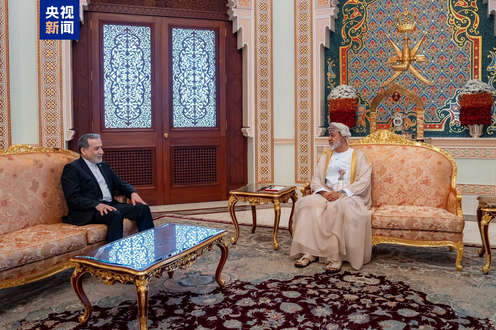 当地时间26日上午,阿曼苏丹海赛姆在马斯喀特会见到访的伊朗外交部长阿拉格齐。